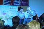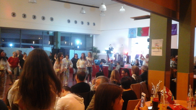 O Grupo das Marchas fardados a rigor lá foram pintando o Hall de la Chiers.