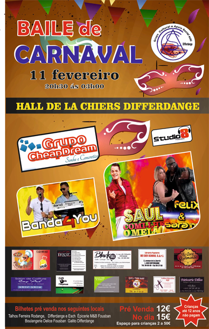 Baile de Carnaval no dia 11/02/2017, no Hall de la Chiers em Differdange com a BAND4YOU, Gilvan Félix & Sara Matos
